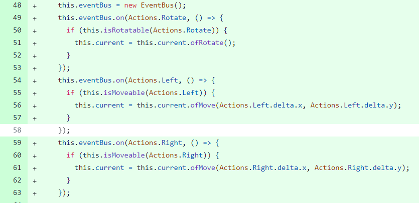 게임 내의 많은 이벤트가 있고 외부 입력이 아닌 내부 이벤트 (라인 삭제, 게임 오버) 등이 있으니 이를 옵저버 패턴으로 관리해 보자.